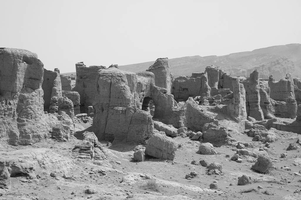 Jiaohe or Yarkhoto is a ruined city in the Yarnaz Valley, 10 km west of the city of Turpan in Xinjiang Uyghur Autonomous Region, China. It was the capital of the Jushi Kingdom. It is a natural fortress located atop a steep cliff on a leaf-shaped plateau between two deep river valleys. This is a fragile mud city which I return to since it is the ultimate architectural ruin that tests every instinct to define a space out of virtually nothing. Tripods are banned so everything is hand held.